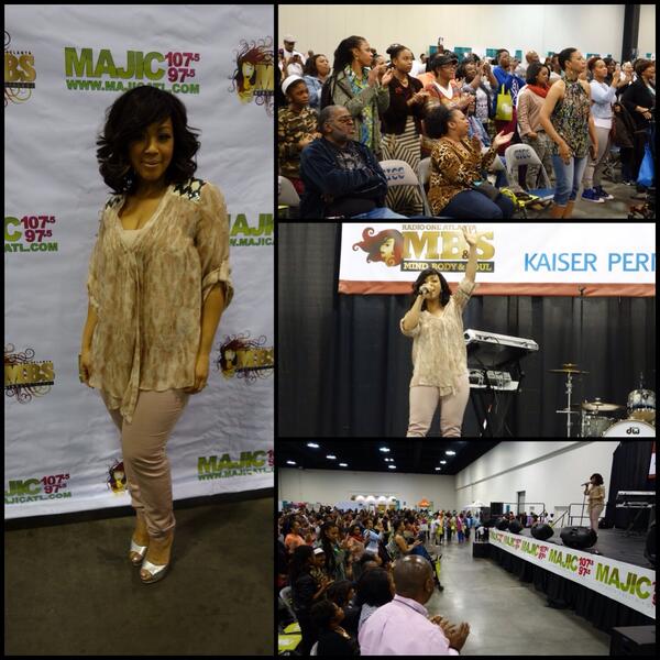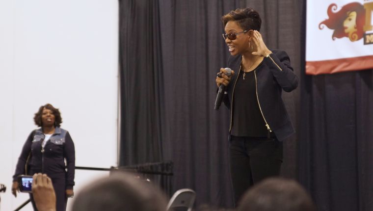 Mary Mary’s Erica Campbell performing at “Mind, Body & Soul Expo”