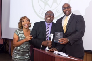 Chief of Staff & President of NAACP (mid Manhattan branch) Geoffrey Eaton presents plaque from congressman Charles B. Rangels office to The Kids League
